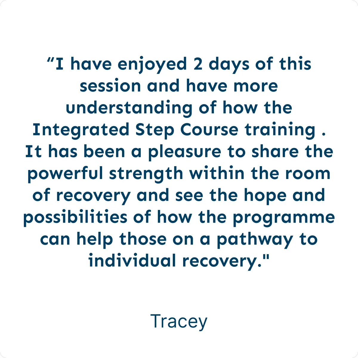 The integrated Step Course is a 12 Step Study Tool designed to compliment your services. It is a programme that can be easily delivered alongside your other courses, treatment programmes and client engagements.