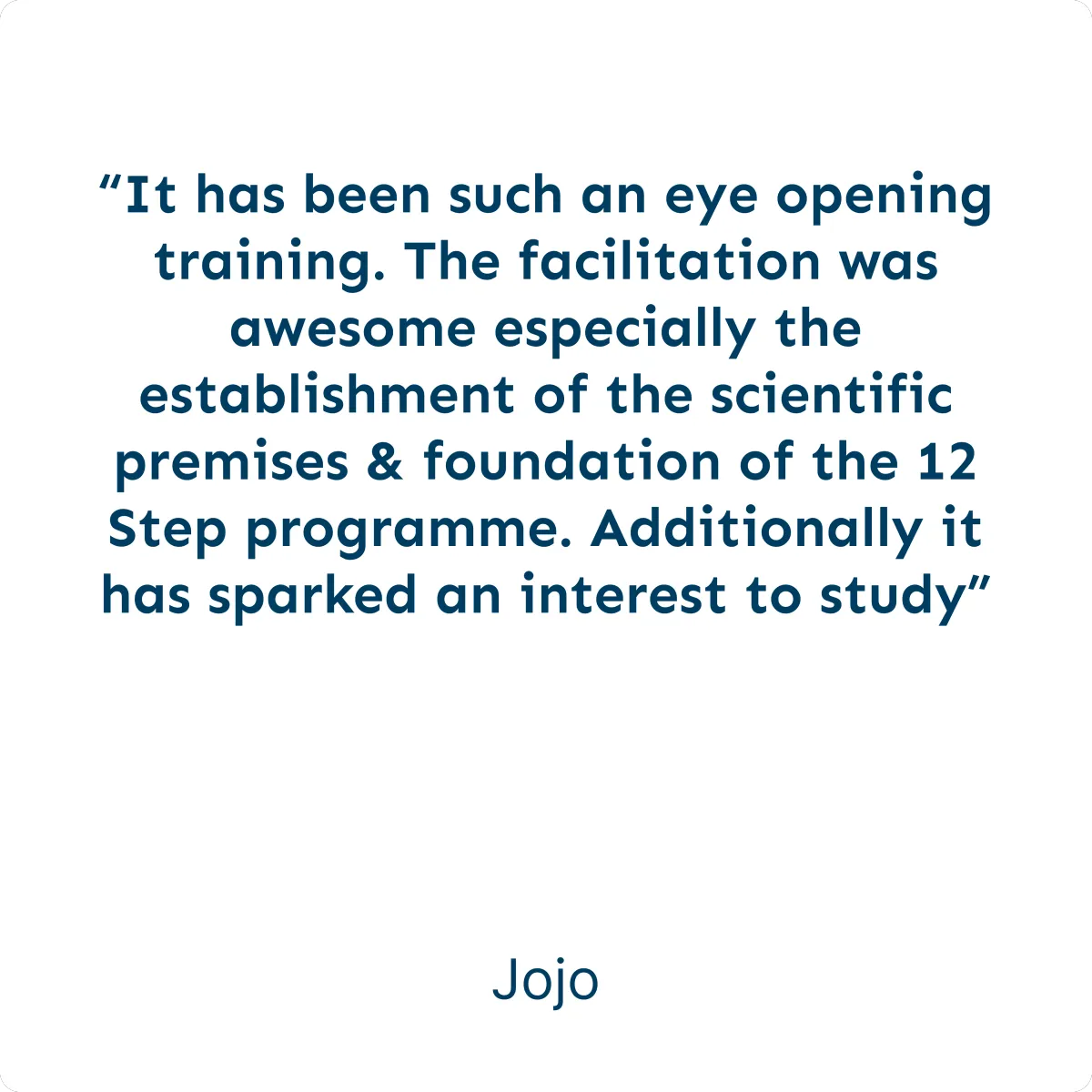 Our comprehensive course will empower your staff to take people through the 12 Steps in a structured and professional way that uses comprehensive teaching tools and evidence based methodologies.